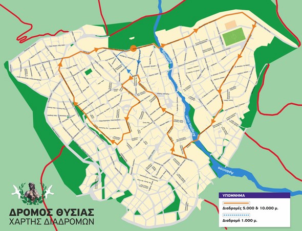 Οι διαδρομές του αγώνα «Δρόμος Θυσίας» για άρρενες και θήλεις είναι οι εξής: