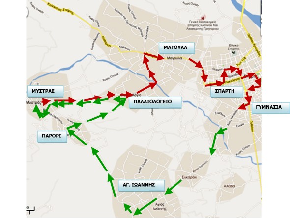 Πληροφορίες διαδρομής: Πρόκειται για μία κυκλική διαδρομή, με αφετηρία – εκκίνηση την τοπική κοινότητα Μυστρά, του Δήμου Σπάρτης. Όλος ο αγώνας κινείται επί ασφαλτοστρωμένης διαδρομής, όπου θα υπάρχει φύλαξη από τα οχήματα, ενώ διασχίζει κάθετα σχεδόν ολόκληρη την πόλη της Σπάρτης. Στην αρχή και περίπου μέχρι το 2ο χλμ. η διαδρομή είναι κατηφορική, ενώ από το 3ο χλμ. μέχρι και το 15ο περίπου χλμ. η διαδρομή είναι σε ευθεία κλίση. Μετά το 13ο χλμ. υπάρχουν αυξομειώσεις του αγωνιστικού τερέν, ενώ τα τελευταία περίπου 2 χλμ. είναι σχεδόν εξολοκλήρου ανηφορικά. Πάνω στην διαδρομή θα υπάρχει φύλαξη του αγώνα, ενώ σε άγνωστο σημείο για τους δρομείς θα υπάρχει σημείο τσεκαρίσματος(check point).