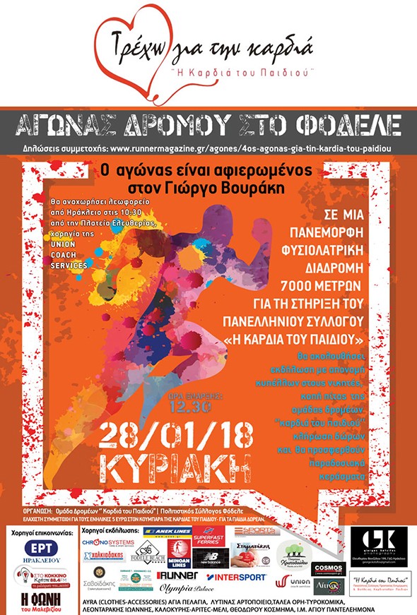 Την Κυριακή 28 Ιανουαρίου θα διεξαχθεί στο Φόδελε ο 4ος Αγώνας για την «Καρδιά του Παιδιού» απόστασης 7 χλμ.