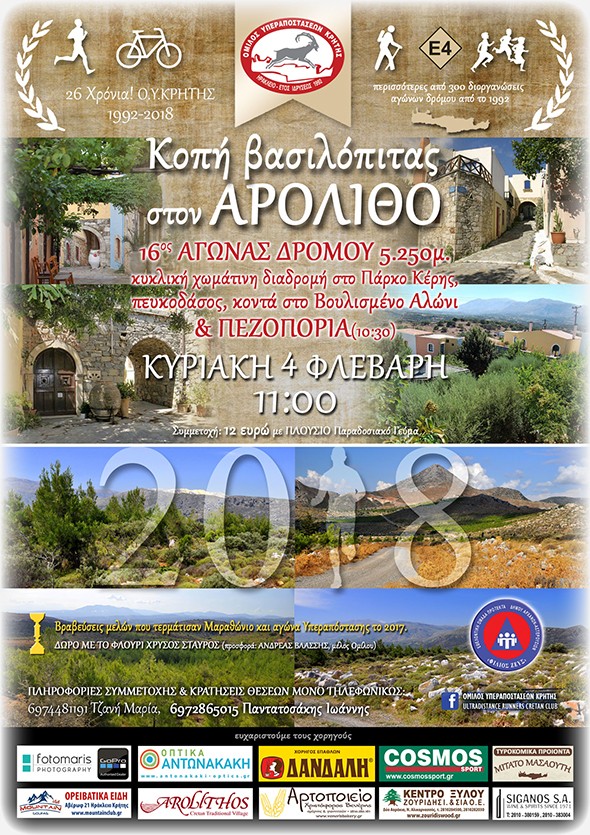 12:15 Κοπή Βασιλόπιτας, Παραδοσιακό Γεύμα, Βραβεύσεις μελών που τερμάτισαν σε μαραθώνιο και αγώνα υπεραπόστασης το 2017.