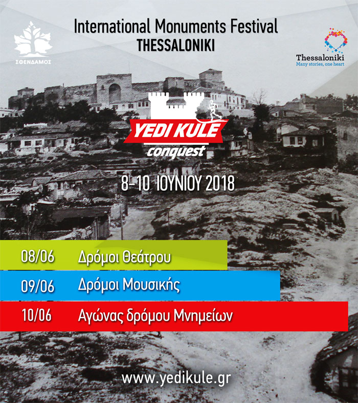 «O ΣΦΕΝΔΑΜΟΣ Αστική Μη Κερδοσκοπική Εταιρία με τον ΟΡΓΑΝΙΣΜΟ ΤΟΥΡΙΣΜΟΥ ΘΕΣΣΑΛΟΝΙΚΗΣ, την υποστήριξη της Εφορίας Αρχαιοτήτων πόλης Θεσσαλονίκης, της τροχαίας Θεσσαλονίκης, διοργανώνει στις 8-9-10 Ιουνίου το International Monuments Festival 2018 και το 4ο Yedi Κule Conquest!