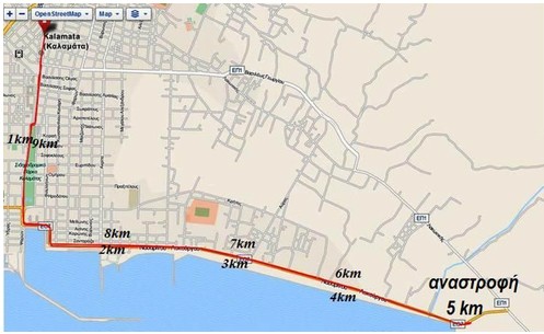 Θα υπάρχει χιλιομετρική ένδειξη με banner ανά ένα (1) χιλιόμετρο, καθ’ όλο το μήκος της διαδρομής.