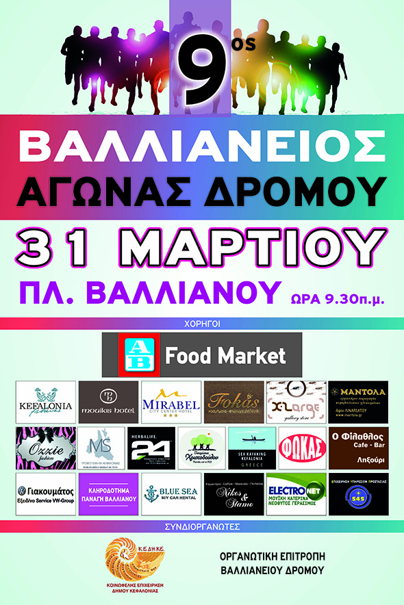 Την Κυριακή 31 Μαρτίου θα διεξαχθεί στην Κεφαλονιά ο 9ος Βαλλιάνειος Αγώνας Δρόμου.
