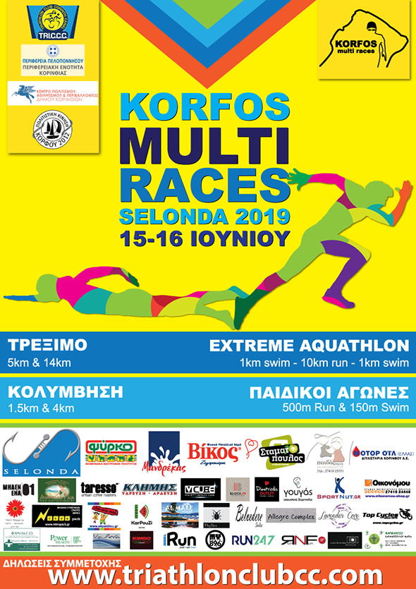 «Η Περιφέρεια Πελοποννήσου – Περιφερειακή Ενότητα Κορινθίας, το Κέντρο Πολιτισμού Αθλητισμού και Περιβάλλοντος Δήμου Κορινθίων (ΚΕ.Π.Α.Π.), η κοινότητα Κόρφου Κορινθίας και ο σύλλογος «Πολιτιστική Κίνηση Κόρφου», σε συνεργασία με το αθλητικό σωματείο «TRIATHLON CLUB CORINTH CANAL», «TRI.C.C.C.», διοργανώνουν το Σάββατο 15 και την Κυριακή 16 Ιουνίου 2019, για δεύτερη φορά στoν Κόρφο Κορινθίας, αθλητικούς αγώνες δρόμου, κολύμβησης και extreme aquathlon, με την ονομασία «KORFOS MULTI RACES SELONDA 2019».