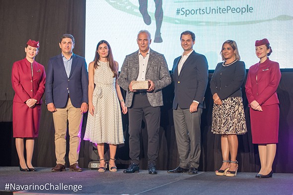 Από αριστερά: Υφυπουργός Πολιτισμού και Αθλητισμού κ. Λευτέρης Αυγενάκης, κα. Κωστάντζα Σμπώκου Κωνσταντακοπούλου εκ μέρους της ΤΕΜΕΣ, Νίκος Γκάλης, Υπουργός Τουρισμού κ. Χάρης Θεοχάρης, κα. Τερέζα Σίσελ Country Manager Greece & Cyprus της Qatar Airways (photo by Elias Lefas)