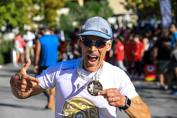Ο υπερμαραθωνοδρόμος Κωνσταντίνος Καρνάζης με το μετάλλιο της διοργάνωσης από φύκι της PHEE (photo by Babis Giritziotis)