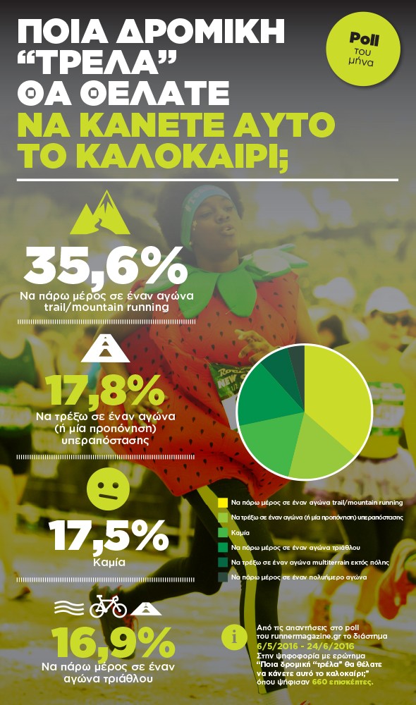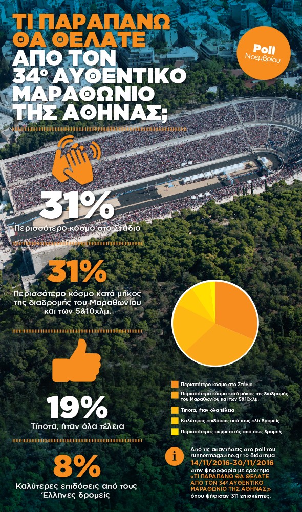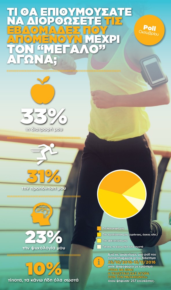Μέσα από τα poll που τρέχουν στο www.runnermagazine.gr, μας βοηθήσατε και φέτος να δούμε τις προτιμήσεις σας και τις επιθυμίες σας που έχουν σχέση με το αγαπημένο μας χόμπι.