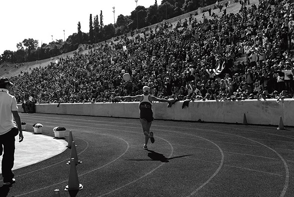 Μόλις έχεις μπει στο Καλλιμάρμαρο Στάδιο, ο κόσμος είναι εκεί για να σε χειροκροτήσει και είναι η ώρα να ζήσεις τη δική σου στιγμή δόξας. Φρόντισε, λοιπόν, να το απολαύσεις και μόλις περνάς τη γραμμή του τερματισμού να το πανηγυρίσεις. Η εμμονή με το χρονόμετρο δεν θα σου χρησιμέψει σε τίποτα αυτή τη στιγμή, το μόνο που μπορεί να σου προσφέρει είναι μία κακή φωτογραφία τερματισμού με εσένα να προσπαθείς να κλείσεις το χρονόμετρο από το ρολόι σου.