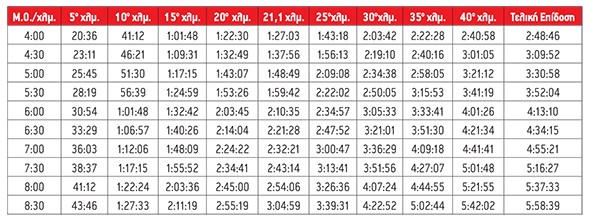 Η κλασική διαδρομή χάρη στη μορφολογία της, διεκδικεί δικαιολογημένα μία θέση ανάμεσα στις πιο δύσκολες του κόσμου. Το γεγονός αυτό είναι που δίνει και μεγαλύτερη αξία στον τερματισμό καθώς πέρα από την απόσταση έχει κανείς να αντιμετωπίσει και τις υψομετρικές διαφορές που παρουσιάζει. Ακόμα και αρκετές φορές να την έχει τρέξει κανείς, καλό είναι κάθε φορά να κάνει μια… επανάληψη, έτσι ώστε να θυμάται τις ιδιαιτερότητες, τις παγίδες, τα πιο δύσκολα σημεία και αυτά που μπορεί να εκμεταλλευθεί για να έχει ένα καλύτερο αποτέλεσμα. Ας την τρέξουμε λοιπόν… Καλό θα είναι να χωρίσετε τη διαδρομή σε επιμέρους κομμάτια υπολογίζοντας τους ενδιάμεσους χρόνους σε κάθε σημείο (δείτε τους σχετικούς πίνακες που ακολουθούν στις σελίδες 40-41). Μπορείτε τον διαχωρισμό αυτόν να τον κάνετε ανά 5 χλμ., αν έχετε καλή μνήμη και είστε καλοί στους υπολογισμούς, ή ανά 10 χλμ. αν δεν τα πάτε και τόσο καλά με τους αριθμούς.
